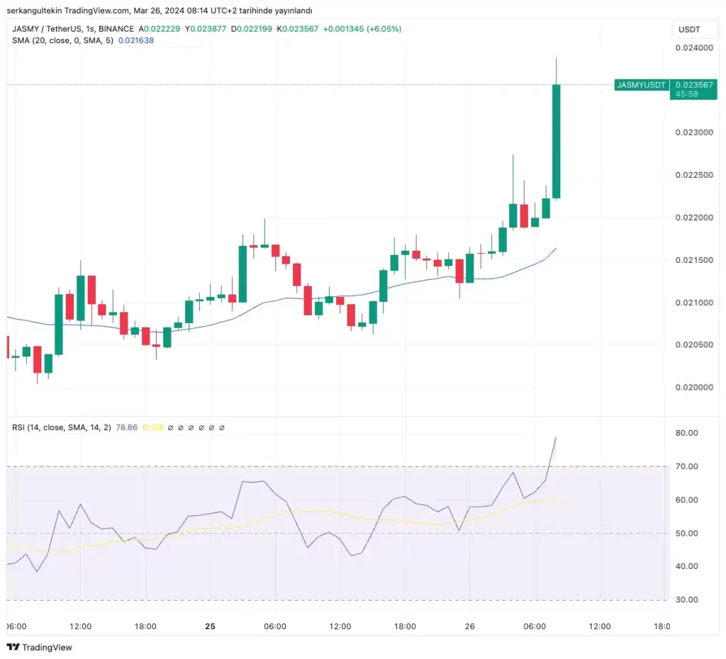 Según los últimos datos del mercado, el precio en vivo de JasmyCoin se sitúa en 0,0236 dólares, con un asombroso volumen de operaciones en 24 horas de 188,5 millones de dólares. Con una capitalización de mercado de 1.100 millones de dólares y un suministro circulante de 49.300 millones de monedas, JASMY se ha establecido firmemente como una fuerza a tener en cuenta en el mundo de las criptomonedas.