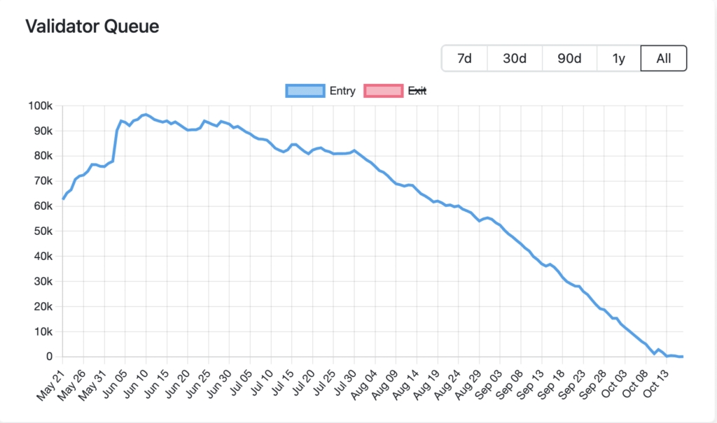 - La cola de validación en Ethereum ha caído a un mínimo histórico.