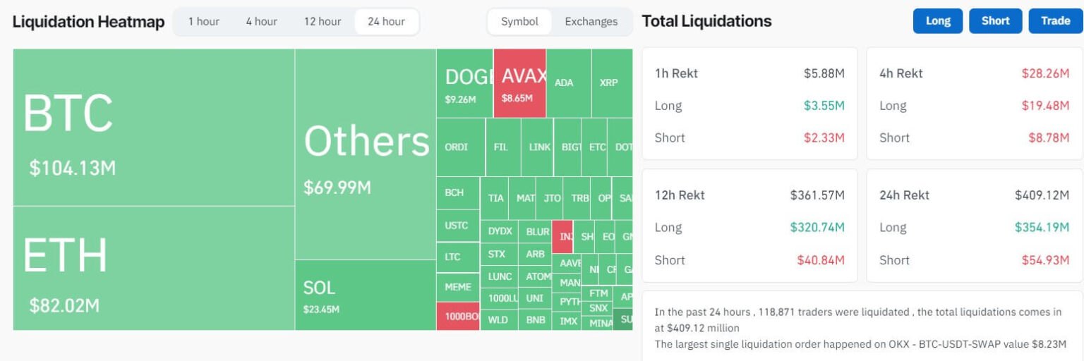 moneda de vidrio datos indica que aproximadamente 356 millones de dólares de estas liquidaciones se atribuyeron a posiciones largas, lo que marca la pérdida más extensa en un solo día impulsada por la especulación larga en los últimos cuatro meses. Además, los operadores en corto enfrentaron pérdidas por un total de 54,79 millones de dólares.