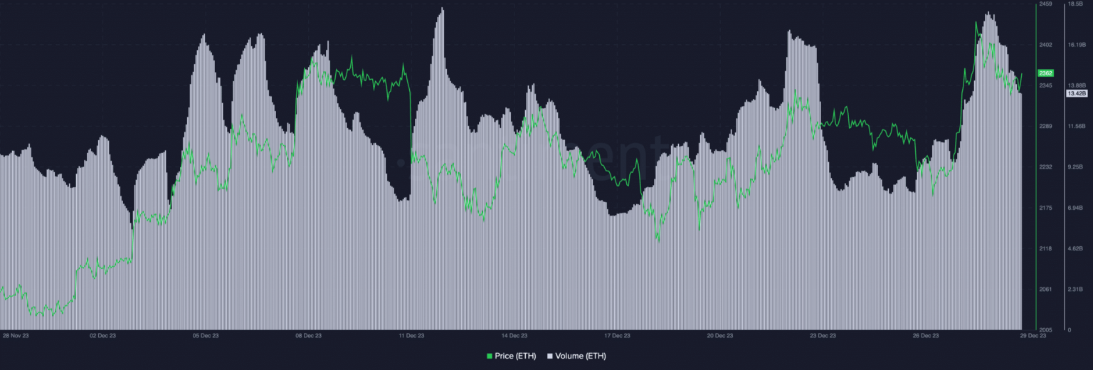 Al mismo tiempo, el volumen de operaciones en torno a ETH también experimentó una disminución.