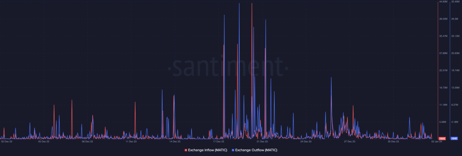 Al cierre de esta edición, la entrada de divisas fue de 165.000 mientras que la salida fue de 164.000. Tal cercanía representa un contexto acalorado entre la acumulación de MATIC y la presión de venta. Para que el token tenga un camino despejado hacia una trayectoria alcista, la salida de divisas debe superar la entrada.