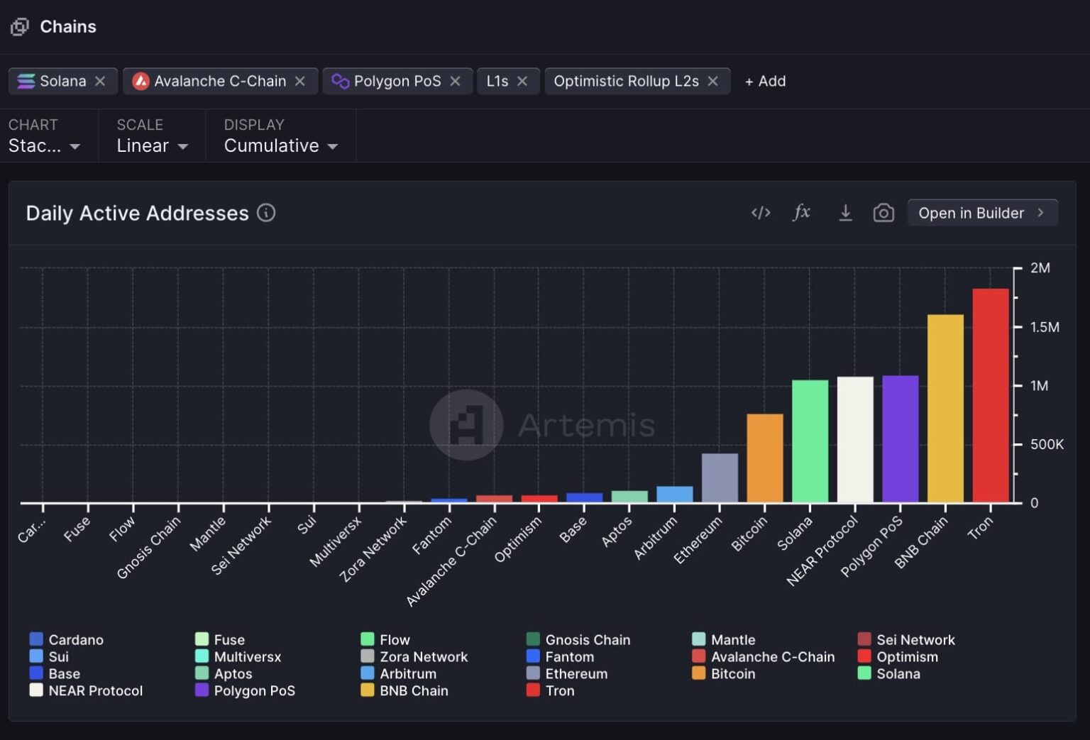 tron [TRX] Recientemente superó a Binance Smart Chain en términos de actividad durante las últimas semanas. El primero había superado al BSC al momento de esta publicación, con 1,8 millones de direcciones activas diarias.