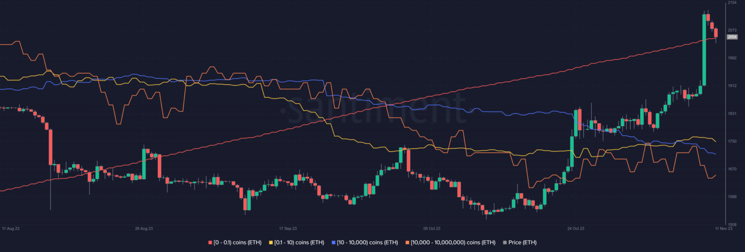 Sentimientos El gráfico reveló un aumento reciente en la cantidad de billeteras que contienen menos de un Ethereum en los últimos días.