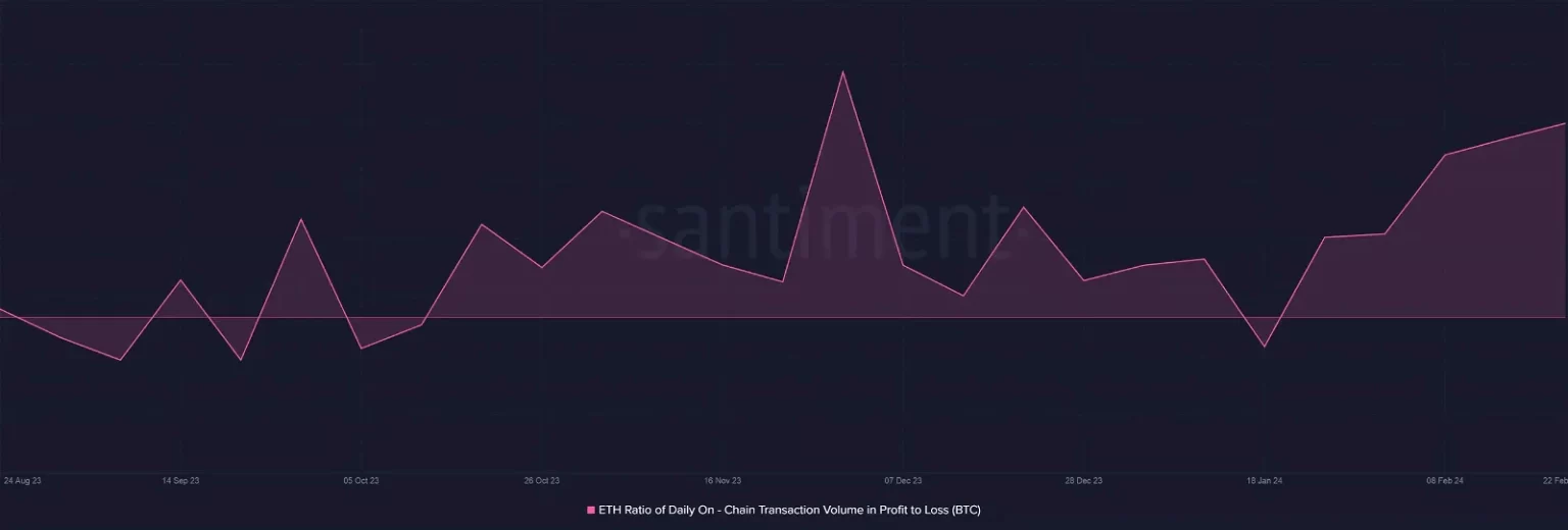 Con el auge de los precios, la mayoría de los comerciantes obtenían beneficios de sus transacciones. Según la firma de análisis blockchain Santiment, la relación ganancias/pérdidas en cadena de Ethereum en la última semana estuvo en su punto más alto en tres meses.