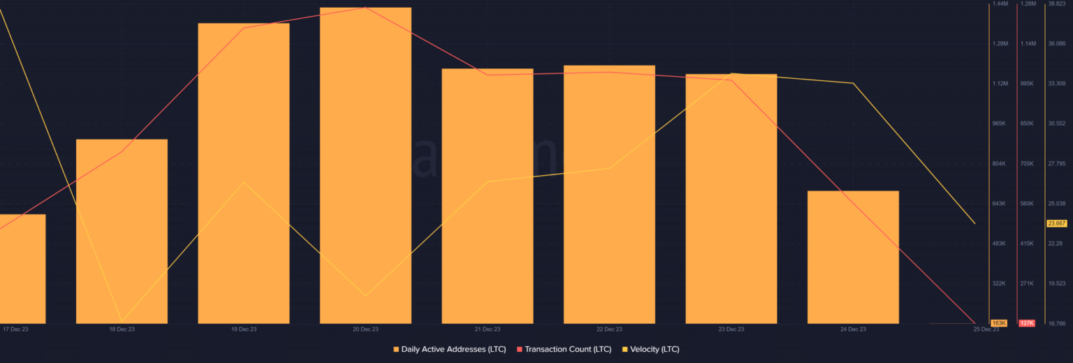 AMBCrypto luego echó un vistazo a los datos de Santiment, que afirmaron que Litecoin Las direcciones activas diarias se mantuvieron altas durante la última semana, al igual que el recuento de transacciones.