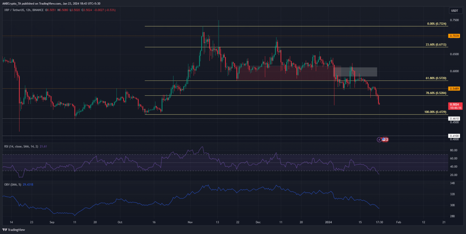 Un informe anterior de AMBCrypto destacó que la presión bajista sobre XRP era intensa y probablemente llevaría los precios al sur del nivel de soporte psicológico de 0,5 dólares. Al cierre de esta edición, este escenario parecía probable.