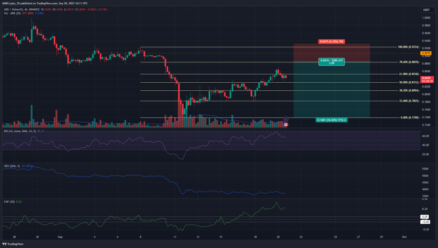 arbitraje [ARB] Los alcistas tuvieron cierto éxito la semana pasada. La tendencia ha sido abrumadoramente bajista desde finales de agosto, pero las cosas empezaron a mejorar el 12 de septiembre. Sin embargo, el gráfico de precios mostró que las ganancias a corto plazo podrían borrarse a medida que ARB se acercara a una región de fuerte resistencia.