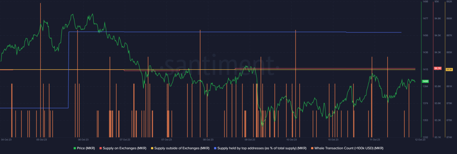 Sin embargo, fue interesante observar que si bien las ballenas aumentaron la acumulación, MKRLa oferta en las bolsas y la oferta fuera de las bolsas se mantuvo bastante estable durante la última semana.