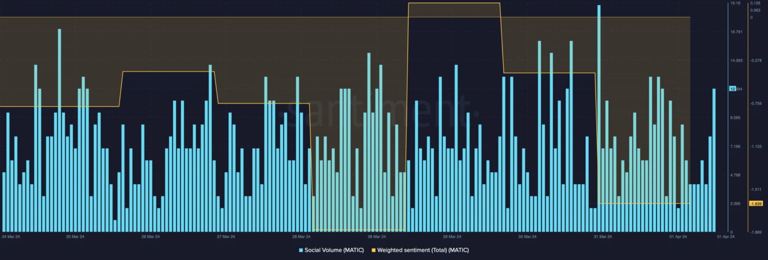 La caída de precios también tuvo un impacto en sus métricas sociales. El volumen social de Polygon aumentó, lo que refleja que el espacio criptográfico estaba hablando del token.