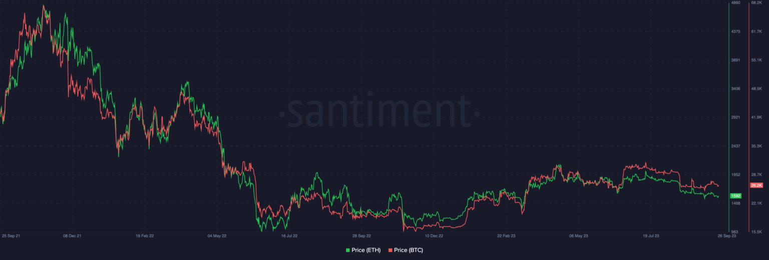 Si bien la proporción de ETH a BTC se recuperó durante un tiempo después de la fusión, el año hasta ahora ha estado marcado por una disminución constante.