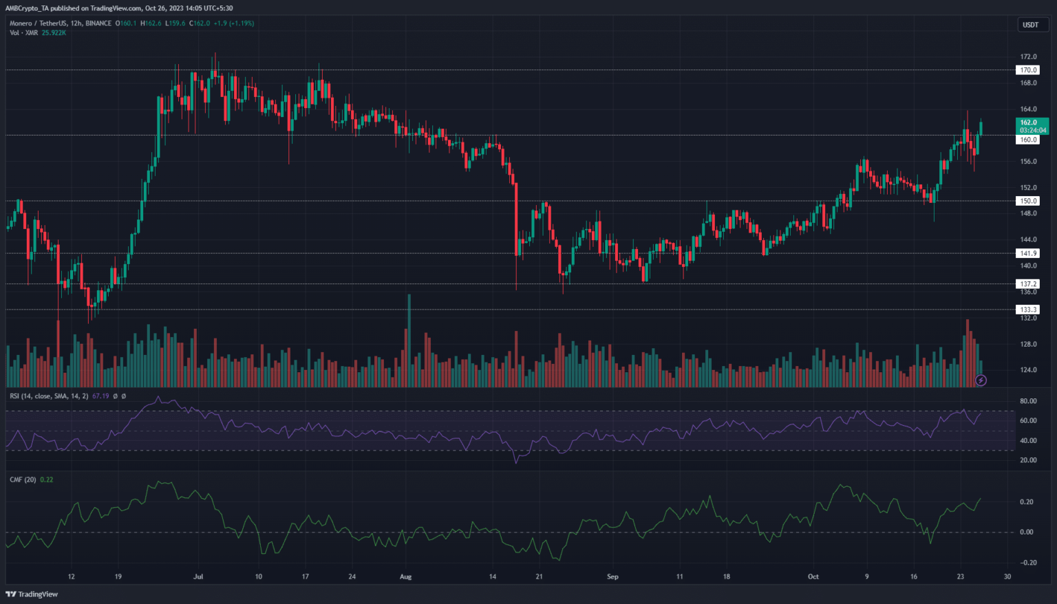 - XMR alcanzó otro hito a corto plazo y los alcistas reclamaron el nivel de precio de 160 dólares.