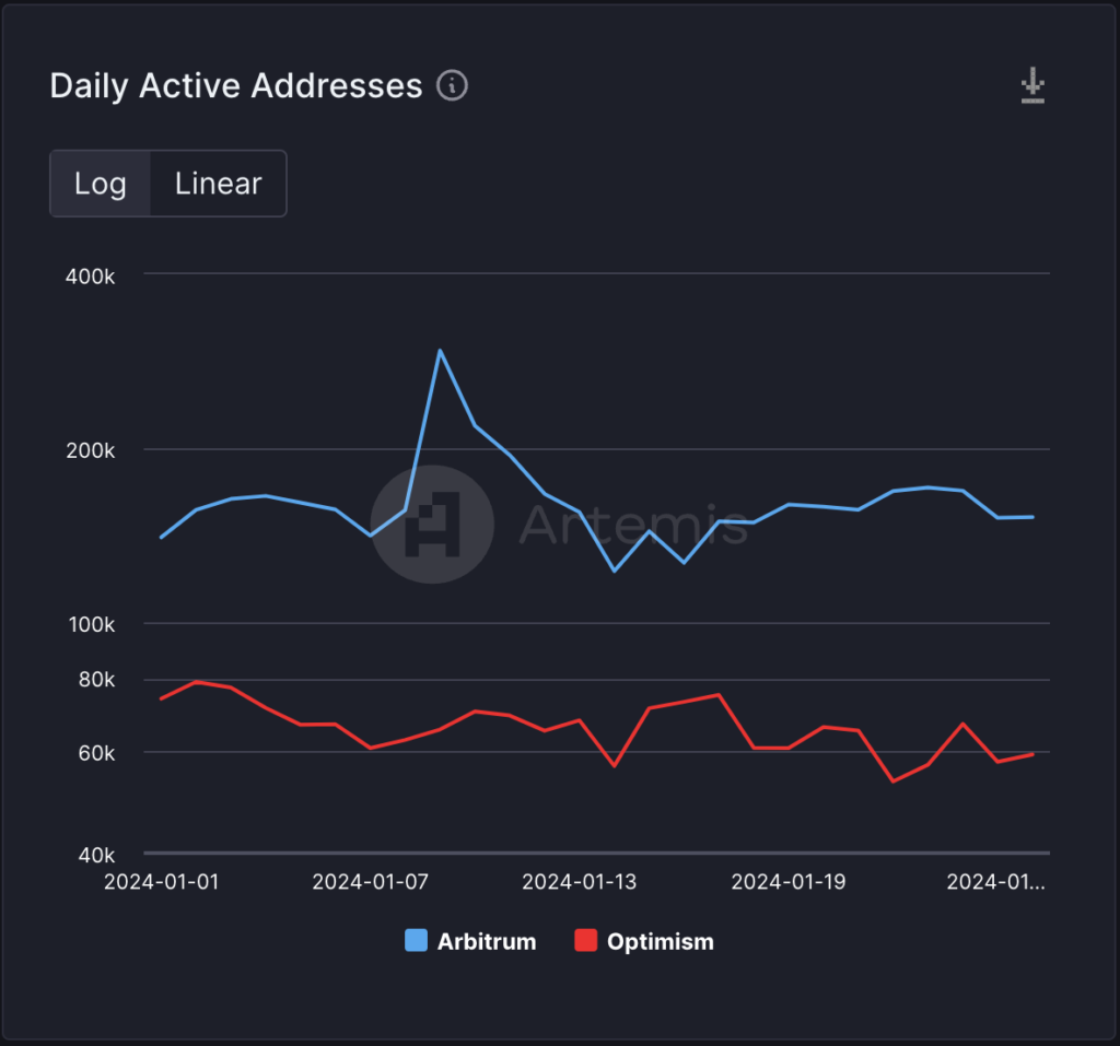 En comparación, la actividad de los usuarios en Arbitrum aumentó durante el mismo período. Según datos de Artemis, la cantidad de direcciones activas diarias registradas en la cadena ha aumentado casi un 10% desde que comenzó el año.