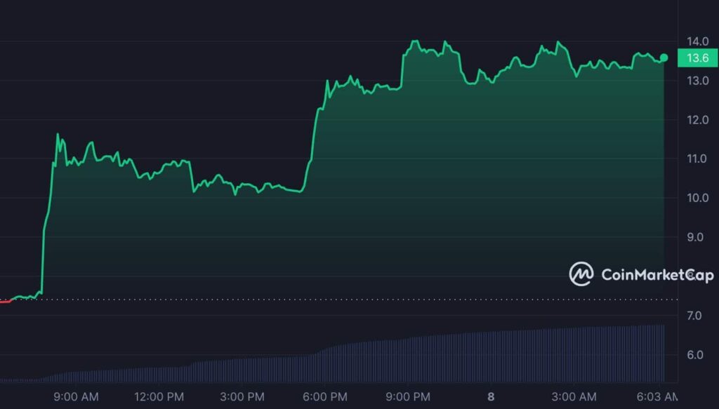 En el momento de esta publicación, el criptoactivo clasificado en el puesto 120 cotizaba a 13,65 dólares, su valor más alto desde el 23 de mayo.