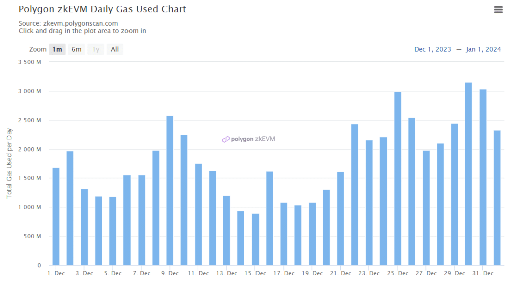 El último mes de 2023 fue una felicidad absoluta para Polígono [MATIC] zkEVM, a medida que la actividad de su red se disparó. El aumento en la actividad de la red indicó un aumento masivo en la adopción y el uso.