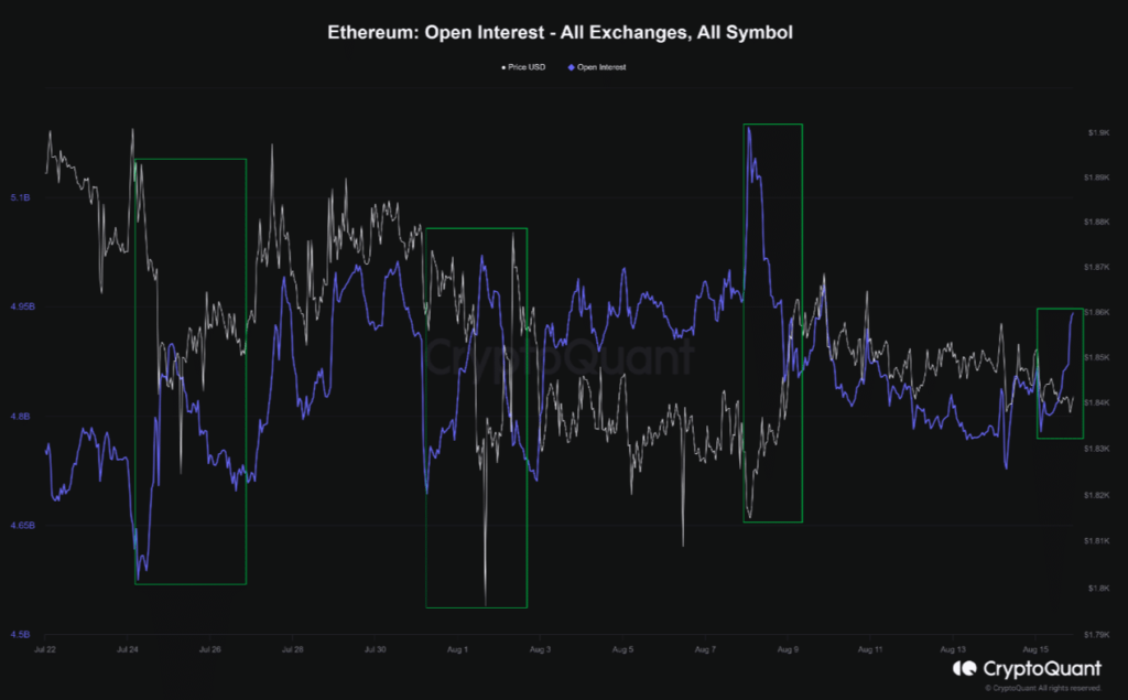 Sunmoon, en su análisis, publicado en CryptoQuant, señaló que un seguimiento de una disminución de interés abierto conduce históricamente a la recuperación del precio de ETH. Y este era el estado actual de las cosas. Además, opinó el analista,