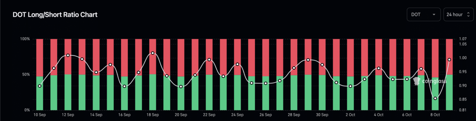 Sin embargo, los datos de Santiment revelaron algo que podría hacer que los inversores y comerciantes tengan esperanzas de una recuperación. Al 10 de octubre, el sentimiento ponderado del DOT experimentó una ligera recuperación. Si bien la métrica no estuvo ni cerca de los máximos de los últimos tres meses, una mejora en esta métrica indicó que los inversores podrían estar avanzando hacia una mentalidad positiva hacia el DOT.