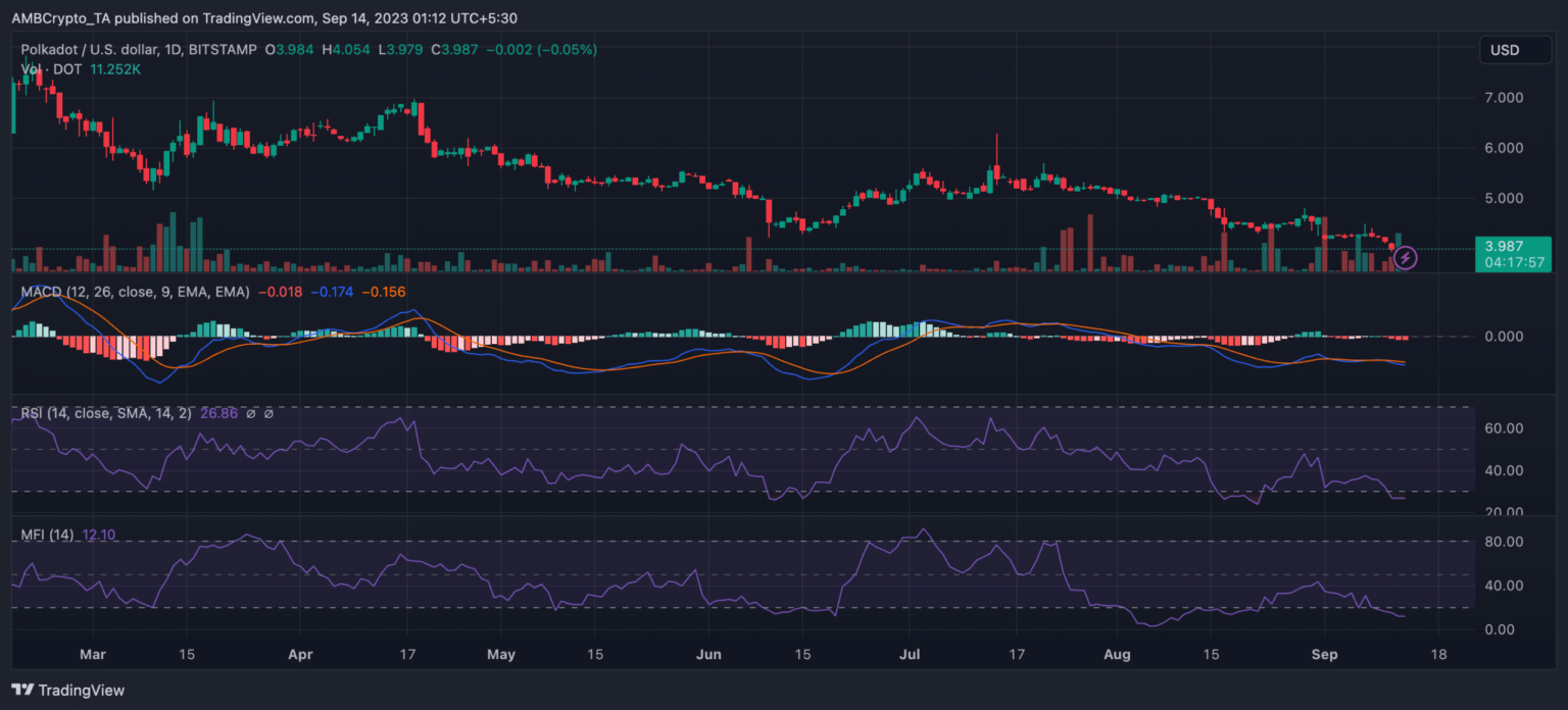 - La acción del precio del DOT mostró cierta recuperación; sin embargo, el RSI y el MFI estaban sobrevendidos al momento de esta publicación.