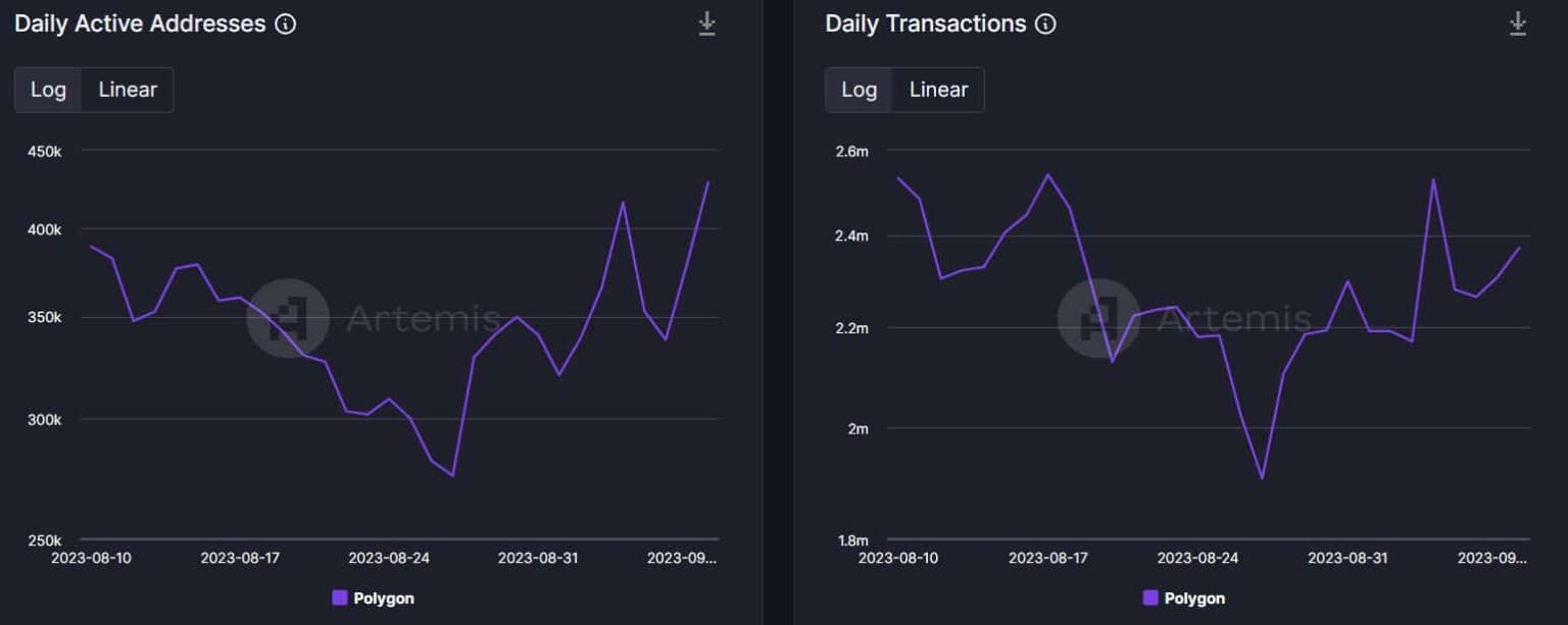 Esto fue establecido además por los datos de Artemis, que revelaron que después de una caída el 27 de agosto, MATICLas direcciones activas ganaron impulso alcista. Gracias al aumento de direcciones, las transacciones diarias de blockchain también aumentaron durante el mismo período.