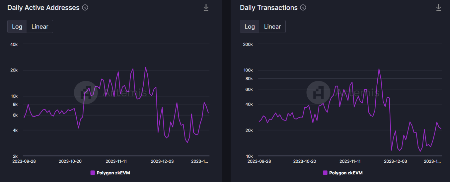 Una mirada a Polygonscan datos También reveló que después de dispararse el 16 de diciembre, el precio promedio del gas de Polygon zkEVM comenzó a disminuir, lo que podría atraer nuevos usuarios a la red en las próximas semanas.