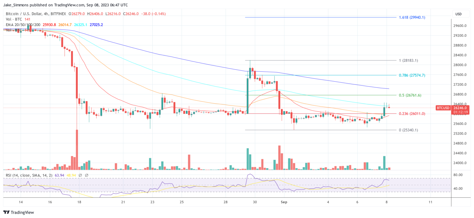 Al momento de esta edición, BTC subió a $26,246, un aumento del 1,8% en las últimas 24 horas.