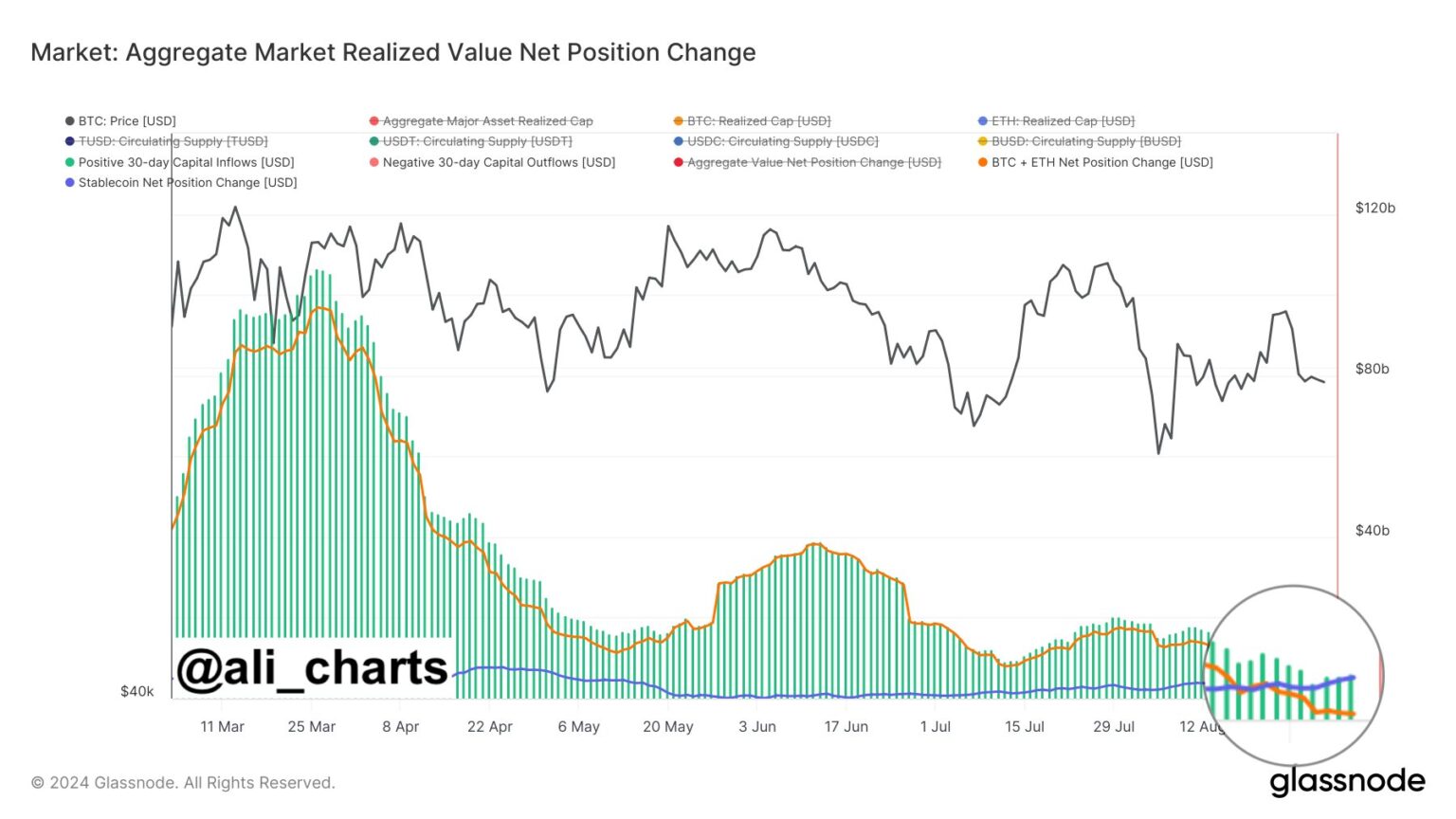 Por otro lado, cada caída de BTC ha sido más profunda y las recuperaciones posteriores son menos sólidas. Por lo tanto, los datos de fin de mes de agosto muestran que podríamos estar acercándonos a un punto de inflexión crítico en septiembre, lo que resultaría en una disminución de la demanda.