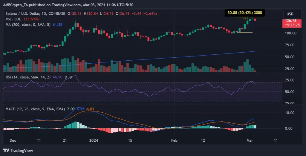 Al finalizar la negociación el 2 de marzo, SOL se liquidó en alrededor de 130 dólares, registrando un modesto aumento de menos del 1%.