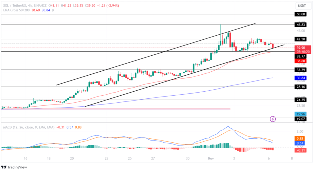 Después de experimentar un aumento en el mercado, el precio de SOL se embarcó en una trayectoria ascendente, dando forma a un patrón de canal ascendente. En particular, Solana logró un avance notable de una resistencia fundamental de 28,16 dólares, la primera vez desde julio.