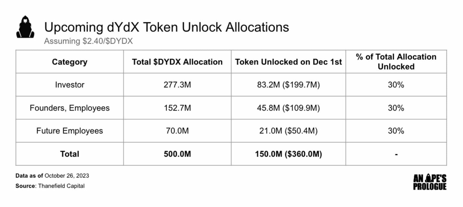 - A pesar de un inminente desbloqueo del token, el token de dYdX mantiene un precio relativamente alto.
