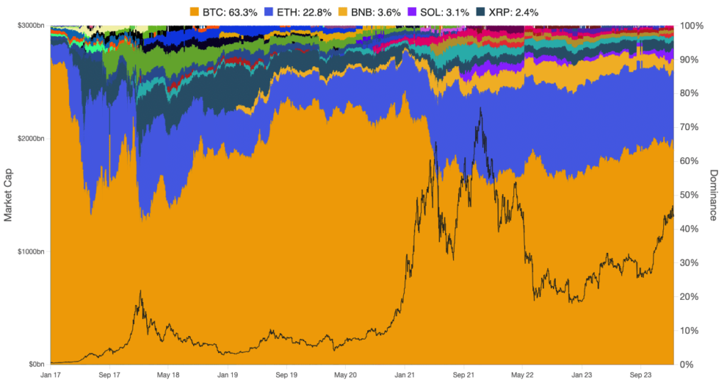 En ese momento, el dominio de Bitcoin era de alrededor del 44,4%. Al final, el cambio no se produjo. Pero entre ese período y ahora, muchas cosas han cambiado.