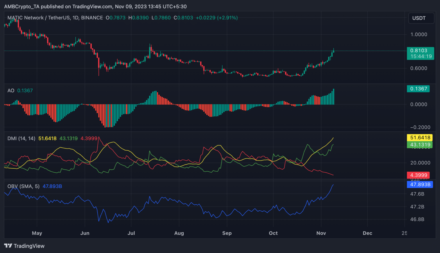 Según el análisis de AMBCrypto, la naturaleza alcista del mercado MATIC actual fue evidente por las lecturas de su indicador Awesome Oscillator, que ha publicado solo barras de histograma verdes por encima de la línea cero desde que comenzó noviembre.