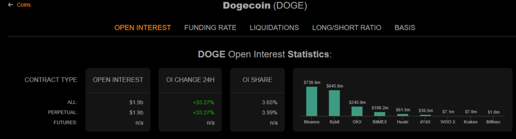 Además, el creciente interés abierto en los futuros de Dogecoin, que alcanzó un récord de 1.800 millones de dólares, significa un nivel creciente de compromiso y participación entre comerciantes e inversores. El interés sustancial en los futuros de Dogecoin refleja una tendencia más amplia de creciente interés institucional y minorista en las monedas meme, destacando su creciente prominencia dentro del ecosistema de las criptomonedas.