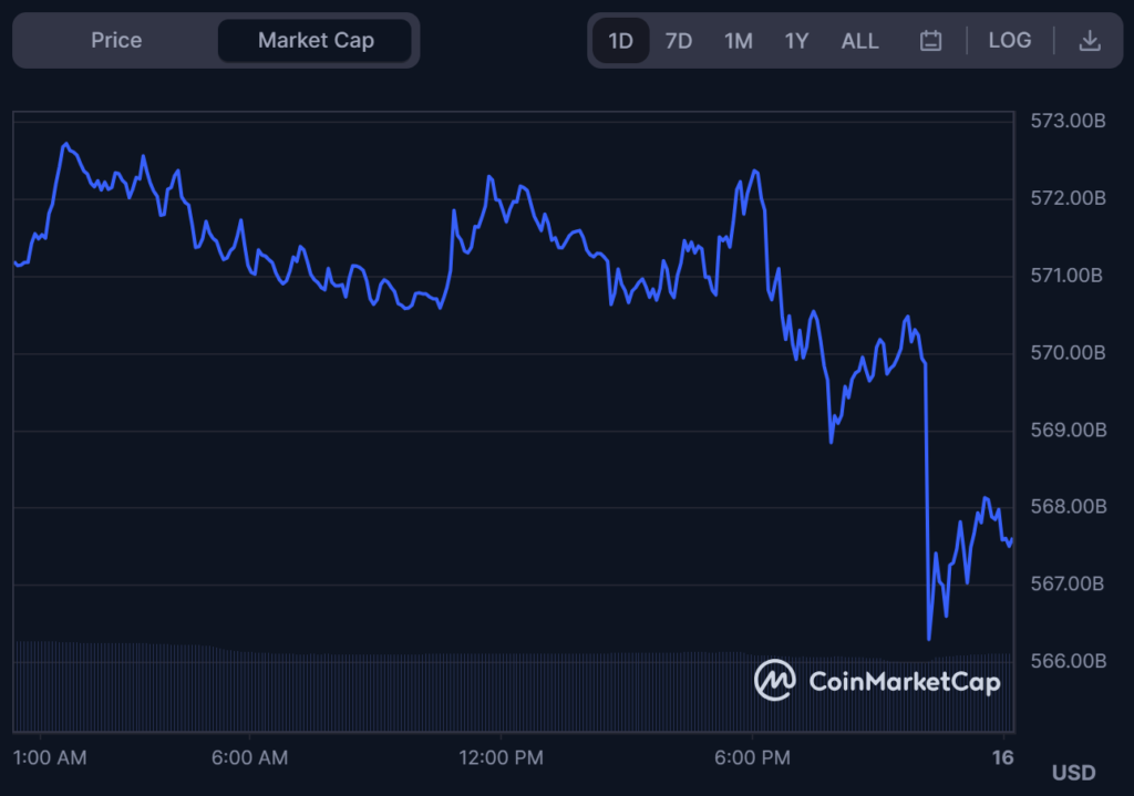 Gráfico de capitalización de mercado de BTC/USD, Fuente: CoinMarketCap