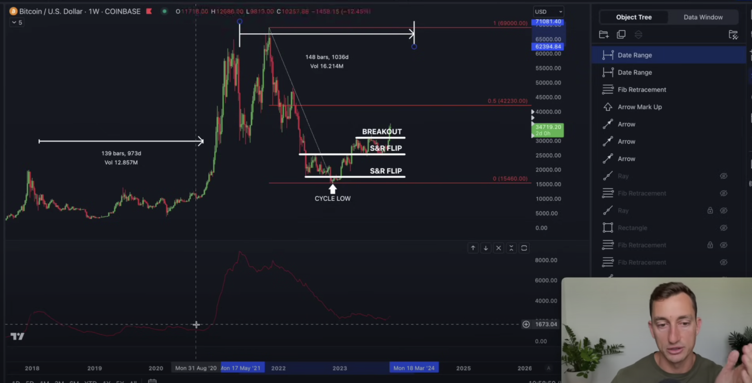 Utilizando esa ventana de 1.030 días, el analista sugiere que marzo de 2024 podría ser el comienzo de la próxima ruptura del mercado alcista de Bitcoin, aunque con algunas correcciones en el camino.