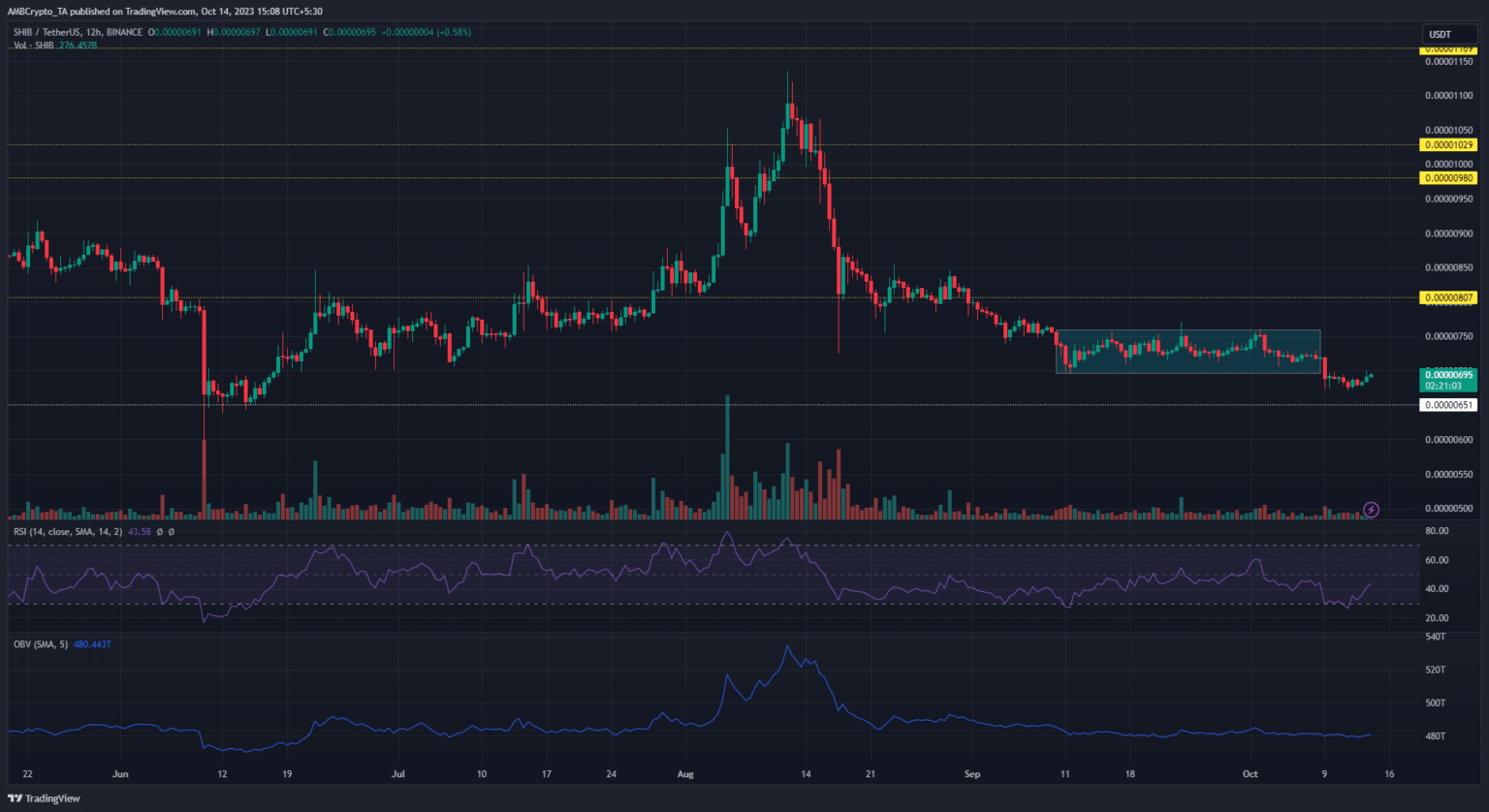 Shiba Inu [SHIB] rompió su estructura lateral con una vela bajista en los marcos temporales más altos. Sin embargo, el memecoin mostró signos de recuperación al cierre de esta edición.