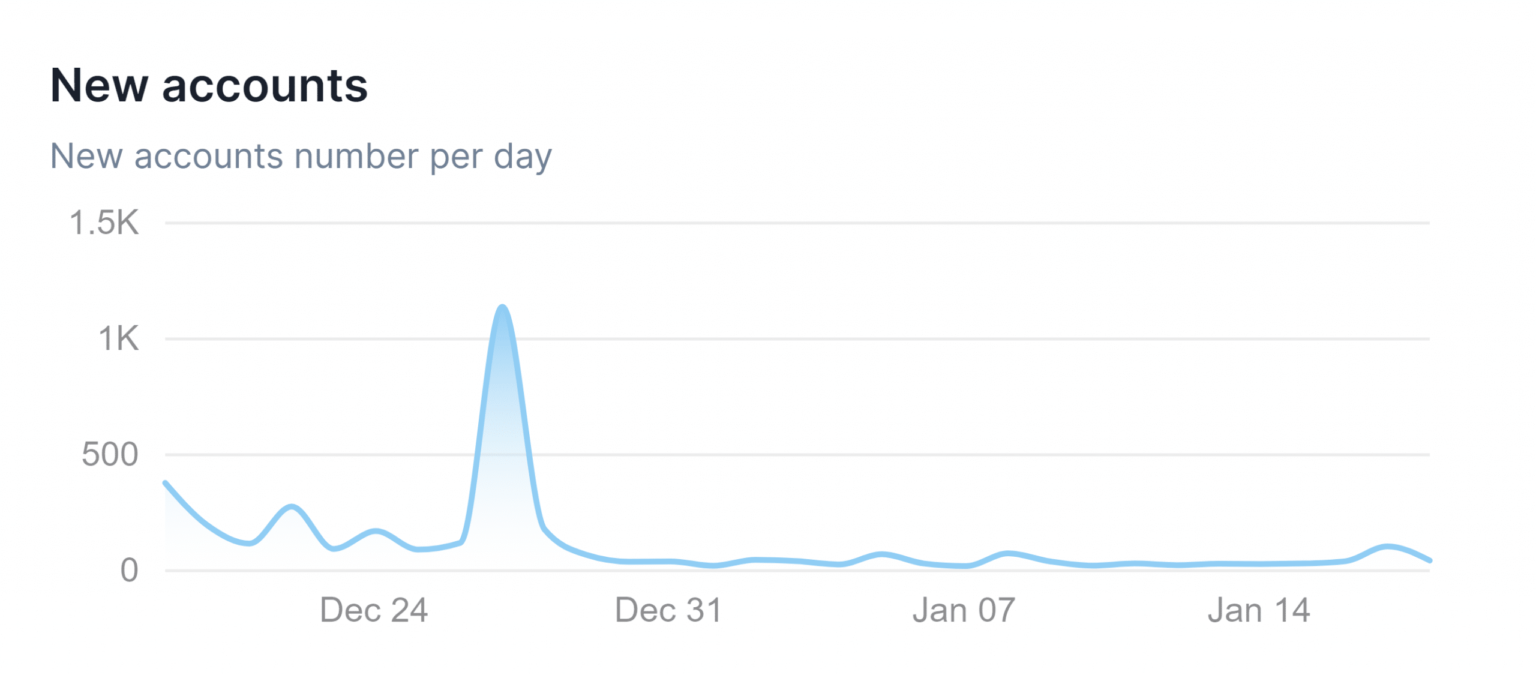 Hacia finales del año pasado, el recuento de nuevas cuentas en Shibarium experimentó un aumento, alcanzando un máximo de más de 1.100 el 27 de diciembre. Posteriormente, las cifras disminuyeron y recientemente han mostrado una tendencia a la baja.