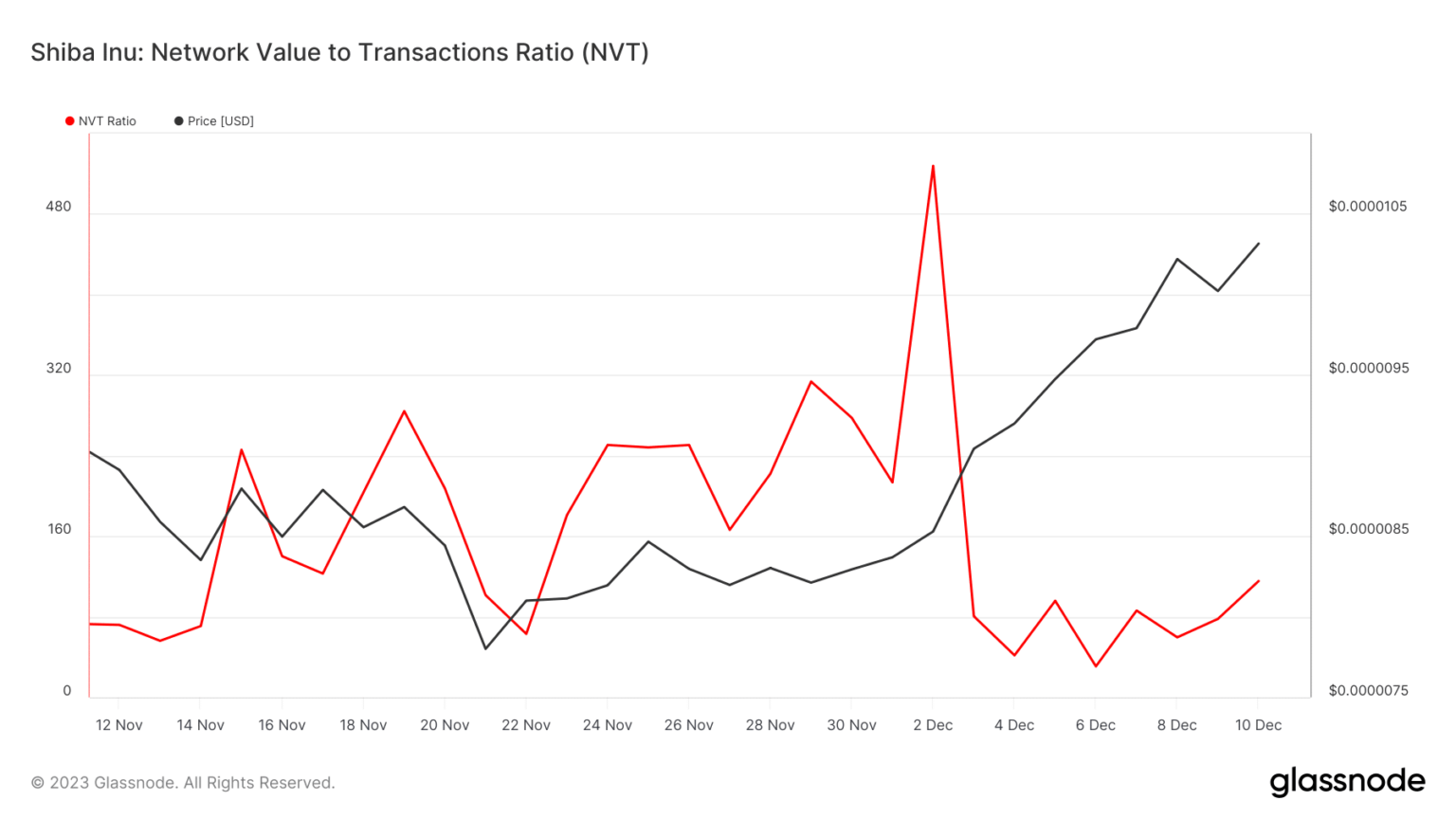 Según los últimos datos, SHIBEl índice NVT registró una caída significativa, lo que sugiere una oportunidad de compra para los inversores antes de que el precio de la memecoin gane impulso alcista nuevamente.