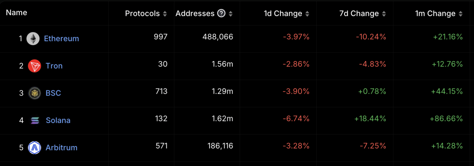 En el momento de esta edición, el TVL DeFi de la red era de 3.800 millones de dólares. Entre las cinco principales redes DeFi de TVL, se clasificó como la cadena de bloques con mayor crecimiento durante el último mes.