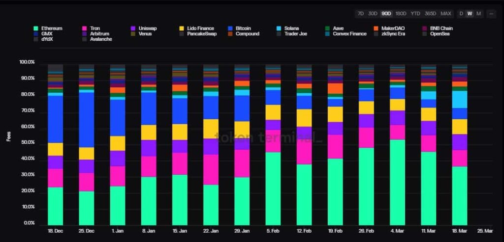 Durante la semana, la red de contratos inteligentes recaudó 20,14 millones de dólares en tarifas, la segunda más alta detrás de Ethereum. [ETH]según el análisis de AMBCrypto de los datos de Token Terminal.