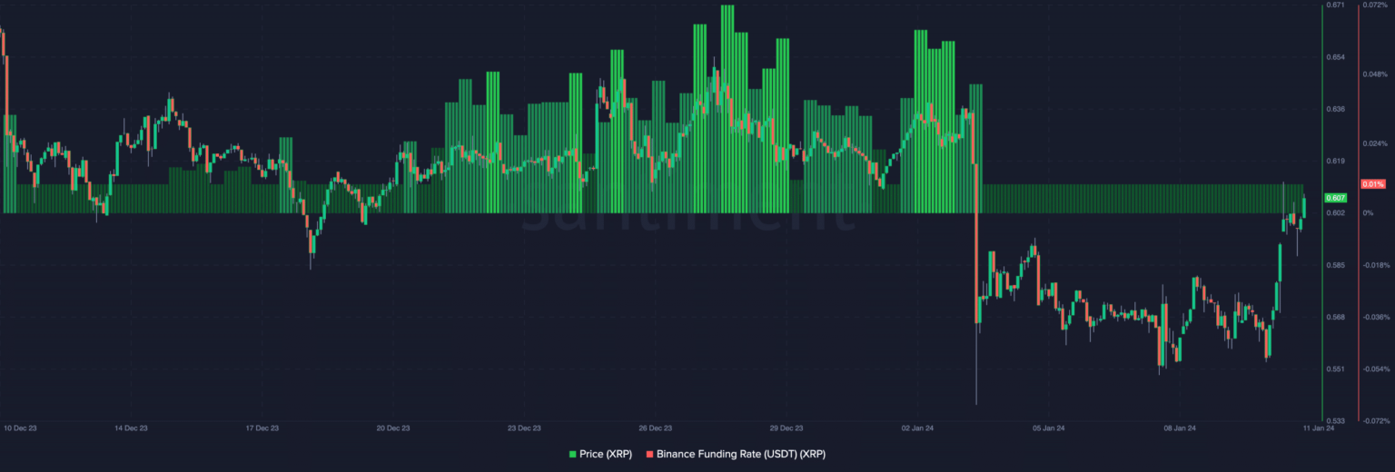 Como muchas altcoins, el precio de Ripple [XRP] subió en dirección ascendente después de que la SEC aprobara el spot Bitcoin [BTC] ETF. El 11 de enero, XRP cruzó los 0,60 dólares. Esta fue la primera vez que XRP superó la zona desde el 3 de enero.