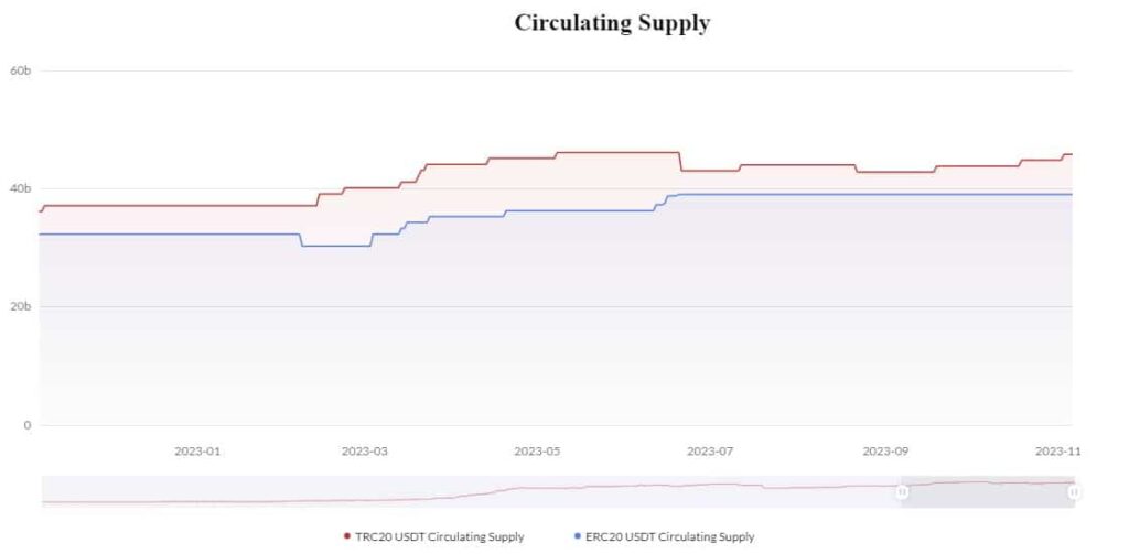 Tron registró un salto significativo en el suministro circulante de su USDT en 2023, registrando una tasa de crecimiento del 21% en lo que va del año (YTD), según datos de tronscan.