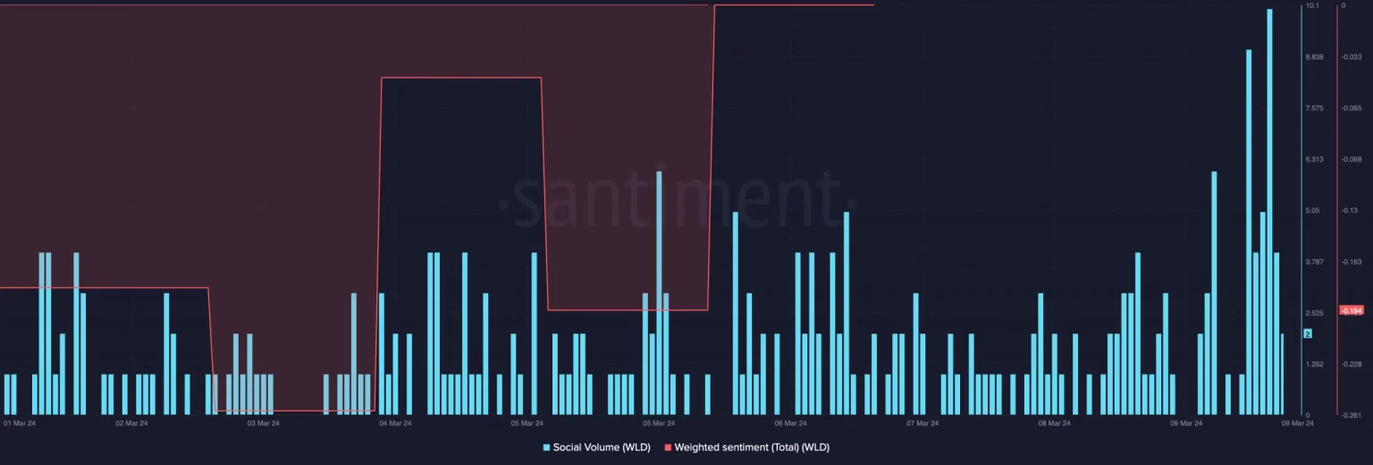 - El sentimiento en torno a WLD se volvió alcista.