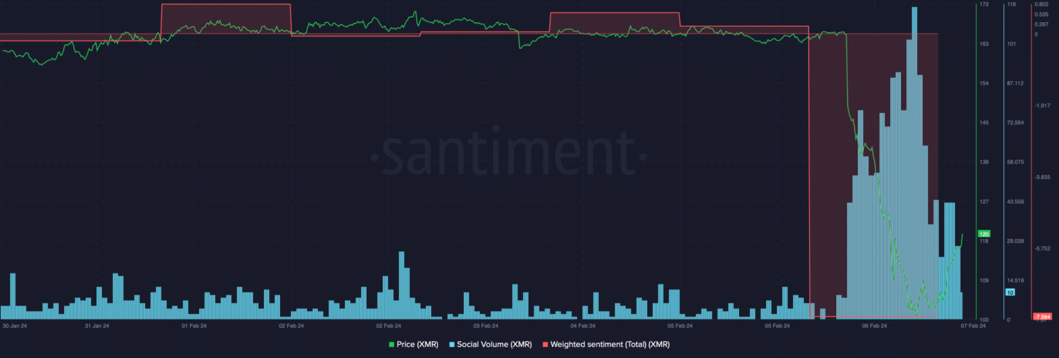 - El sentimiento bajista en torno a XMR se disparó después de que Binance eliminara el token de la lista.